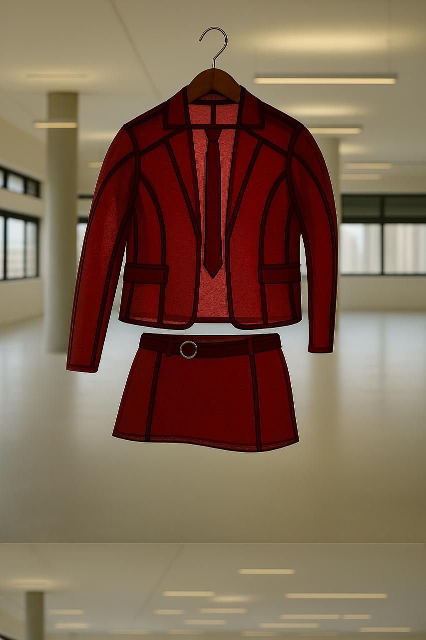 Chaqueta con falda elaborada en bioplástico innovador, que combina elegancia, resistencia y conciencia ambiental. Perfecta para quienes buscan moda responsable sin perder sofisticación.