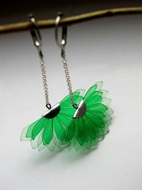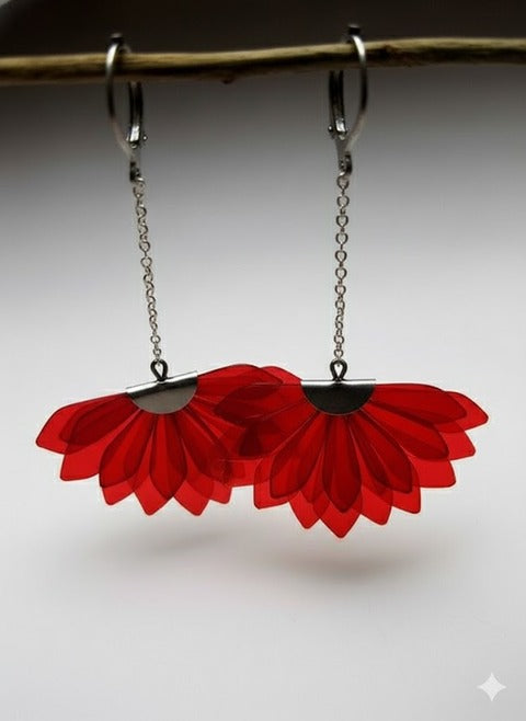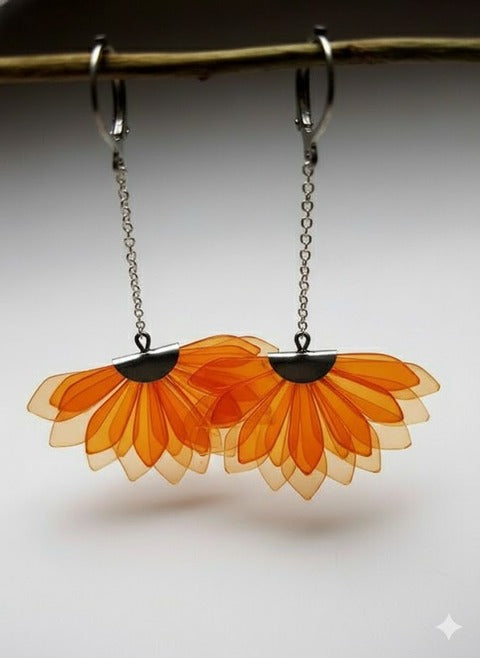La belleza natural hecha joya. ✨Estos aretes con forma de media flor, inspirados en el girasol, capturan la energía del sol y el color de la vida. 📿Ligeros, vibrantes y hechos con bioplástico de cáscara de fruta, disponibles en tonos rojo, verde, naranja y azul. Perfectos para dar un toque fresco y ecológico a cualquier look.🔥